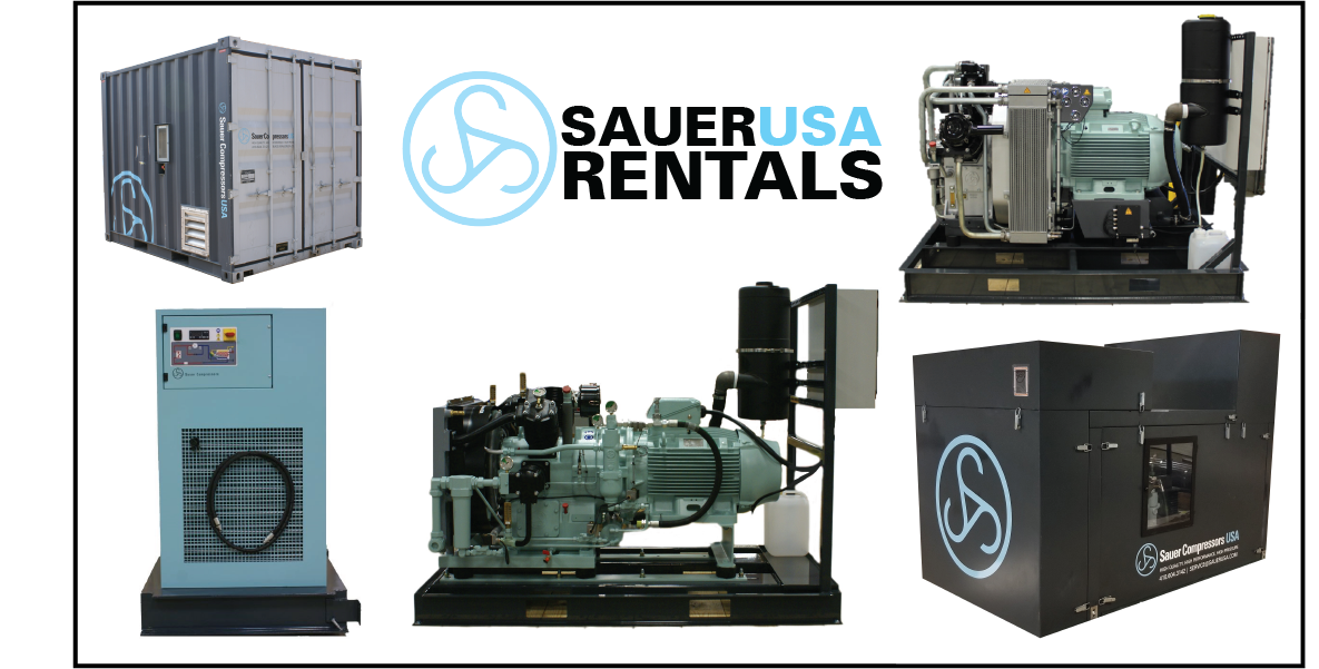 If you find yourself in a situation where lead time constraints impact your bottom line, consider Sauer rentals. Can’t get your equipment serviced in time, or are spare parts on backorder? Sauer’s rental department offers a diversified rental fleet, including more than just compressors. We offer a unique fleet of air compressors (diesel or electric), high-pressure hoses, medium and high-pressure refrigeration dryers, oil-free outlet filtration, and more.