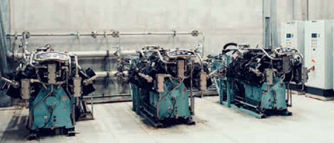 The hydroelectric power plant is equipped with WP6310 Sauer-Compressors. The three water-cooled machines achieve a combined flow rate of more than 706 scfm at a final pressure of 930 psi. The compressed air they generate is required to control the turbines and blow out the water to operate the phase shifter. Both applications are crucially important in generating energy using water power.
