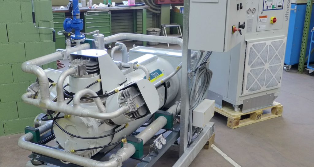HAUG oxygen compressors are often used as a re-compressor for on-site gas generators. Oxygen is generated by a PSA, VPSA or membrane plant. Depending on the process, the pressure downstream of the generating plant is at atmospheric pressure (VPSA) or around 58 psi (PSA). Depending on the application of oxygen then the pressure must be increased afterward. This is done by a re-compressor.
