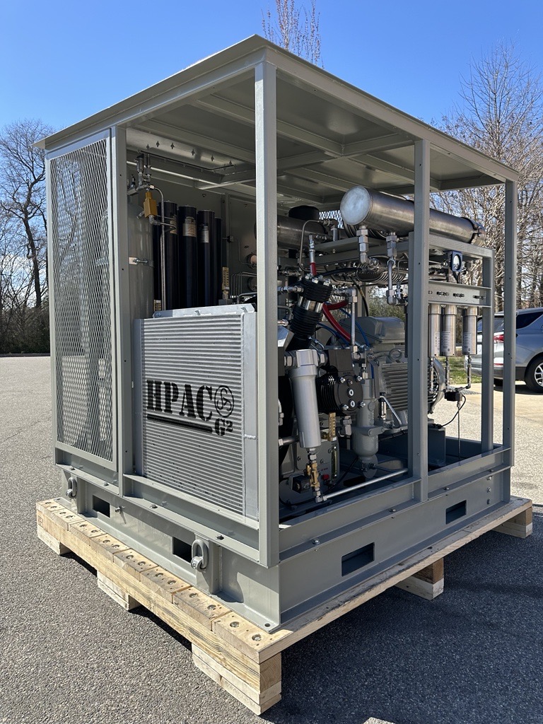 The HPAC Compressor System is a multi-stage, high-pressure, air-cooled, standalone skid package.