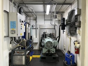 The Sauer USA Rental team went to work and immediately supplied a Hurricane Series WP4351 HPAC system in a weather-resistant container ready to ship the same day. The HPAC container includes a demister and desiccant drying capabilities to 70°F, receiver, and controller (images below). The HPAC system allows the wind tunnel operator to control the airspeed within the tunnel. One of the critical requirements in wind tunnel testing is maintaining a steady and uniform airflow. The HPAC system helps achieve this by providing a constant and controlled air supply, reducing turbulence and fluctuations that could affect test results.